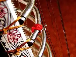 - čikarí(džhala tár) horní tři (někdy tři) bzučivé (bordunové) struny pro zdůraznění rytmu
