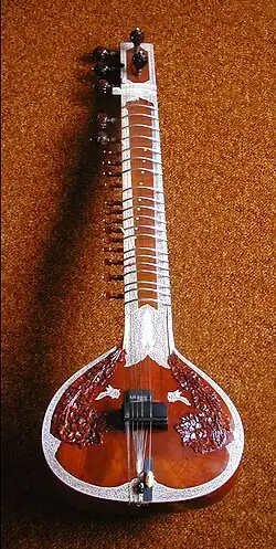 - vzácně vyráběný sitár s osmi hlavními strunami ve stylu Nikhila Banerjeeho.