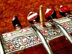 - kuntí (kilak, kan) ladící kolík, s hlavičkou jednoduchého kulovitého tvaru, se spirálovitou nebo lotosovou řezbou či v jiném vzácnějším tvaru, u kvalitních nástrojů z tmavého rosewood (kala sheeshyam), vzácně z velmi tvrdého a trvanlivého dřeva khir