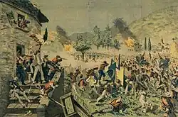 Otázka získání Říma se tímto nevyřešila a pouze odložila. Další konflikt pak vyvolal sám papež Pius IX., když si svojí stupňující se protiliberální politikou znepřátelil značnou část společnosti, kterou nyní zasáhla vlna protiklerikálního cítění. Italská vláda byla na nátlak veřejnosti nucena přijmout řadu usnesení prohlubujících světské rysy italského státu.[pozn. 3] Nálady ve společnosti znovu využil Garibaldi a s novou jednotkou dobrovolníků se opět vydal na pochod na Řím, tentokrát již s přímou podporou italské vlády. Nicméně Francie znovu zasáhla a vojenský sbor odvolaný na základě předchozí dohody byl povolán zpět. Garibaldi a jeho muži byli opět poraženi, tentokrát francouzskými jednotkami v bitvě u Mentany. Francouzské síly se přesto udržely v Říme pouze tři roky. Po francouzské prohře u Sedanu ve válce s Pruskem vstoupily italské jednotky 20. září 1870 do Říma jenž se záhy nato stal novým italským hlavním městem. Území Papežského státu existujícího přes tisíc let bylo anektováno Itálií. Snaha o sjednocení Apeninského poloostrova tak byla prakticky završena.[26]