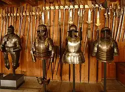 Většinou se jedná o muškety a pistole, ale také meče (včetně japonských samurajských mečů), malá děla, kopí a kuše (samostříly). Součástí sbírky zbraní jsou také různé exotické předměty, například eskymácká kánoe ze 16. století a hadí kůže. Nachází se zde také původní model zámku, který nechal zhotovit hlavní architekt Caspar Vogel, aby hraběti Wrangelovi předvedl svůj plán architektonického řešení zámku. Velkou část sbírky tvoří válečná kořist během švédské invaze do Polska ve druhé polovině 17. století.