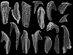 - ↑ HINDE, G. J. On annelid jaws from the Cambro-Silurian, Silurian and Devonian Formations in Canada and from the Lower Carboniferous in Scotland. Quarterly Journal of the Geological Society of London. 1879.