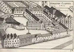 Na základě reforem z Melku vévoda Albrecht V. Habsburský roku 1418 odebral klášter iroskotským mnichům a usídlil zde benediktiny rakouské řádové provincie. Označení „skotský“ však klášteru zůstalo.