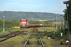 Lokomotiva 742.216 při posunu na žlebském zhlaví -