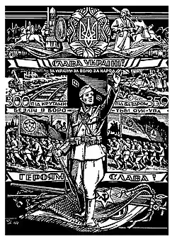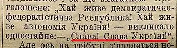 - ↑ Yuriy Yuzych. "Glory to Ukraine!": Who and when was the slogan created? [online]. [cit. 2020-06-21]. Dostupné v archivu pořízeném z originálu dne 25 February 2022.
