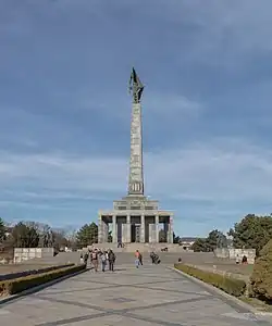 Centrální část památníku tvoří obřadní místnost, jejíž vrchní součástí je 39,5 m vysoký monument v tvaru obelisku. Na jeho vrcholu se nachází socha sovětského vojáka vztyčujícího vlajku od slovenského sochaře Alexandra Trizuljaka. Stěny obřadní místnosti jsou zhotoveny z mramoru. Jsou na nich vyryta jména slovenských měst a datum jejich osvobození Rudou armádou, i básnický epitaf: