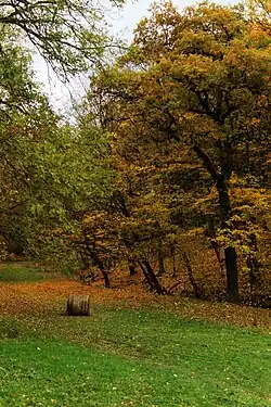 Přibližně v polovině údolí se také nachází bývalý památný dub, který je ale v současné době odumřelý, zřejmě v souvislosti s výstavbou nedaleké dálnice, jež měla za následek pokles spodní hladiny vody.[4]