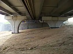 Spodní stavbu tvoří dvě dvojice železobetonových pilířů ve tvaru lotosového květu a dvě opěry v celé šířce mostu. Pružné uložení nosné konstrukce na podporách je zajištěno pomocí elastomerových ložisek.