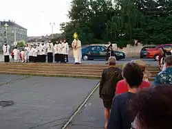 Obrázky, zvuky či videa k tématu Slavnost Těla a Krve Páně na Wikimedia Commons - Poslední Boží tělo v Lidicích 1942