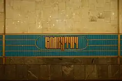![]() ![]() ![]() Horní obrázek je střední loď stanice Dolní obrázek vlevo je kolejová zeď s nápisem stanice Dolní obrázek vpravo je kompozice z bílého mramoru připomínající koryto Dněpru | |||||||||||||||||||||||||||||||||||||||||||||||||||||||||||||||||||||||||||||||||||||||||||||||||||||||||||