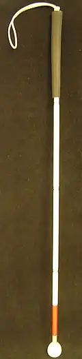 Lidé s vážnou vadou zraku mohou cestovat samostatně s použitím bílé hůlky, mezinárodního symbolu pro slepotu.