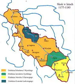 Slezsko po roce 1177 s vyděleným Hlohovskem, Opolskem a Ratibořskem