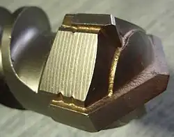 Destičky ze slinutého karbidu zapájené do hlavy příklepového vrtáku