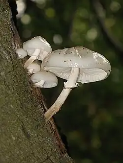- ↑ a b c Slizečka porcelánová (Oudemansiella mucida) [online]. www.levny-hosting.cz [cit. 2013-05-15]. Dostupné online.