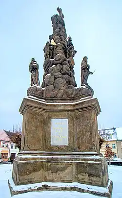 - ↑ a b c d e f g Památkový katalog: Sloup se sousoším Nejsvětější Trojice [online]. Praha: Národní památkový ústav [cit. 2021-01-28]. Dostupné online.