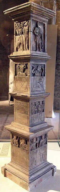 Kamenné bloky jsou zdobené basreliéfy, které představují různé scény – galská a římská božstva i ozbrojené postavy, snad lodníky.