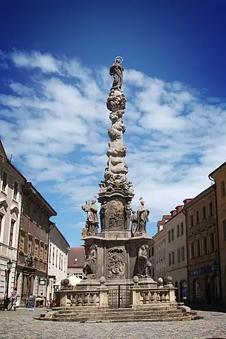 Sloupy Panny Marie a Nejsvětější Trojice shrnuje dva typy volně stojících sloupů, tedy mariánské a trojiční sloupy, jejichž budování bylo rozšířeným způsobem manifestace víry v katolických zemích zejména v 17. a 18. století a staly se jedním z nejviditelnějších znaků barokní architektury.