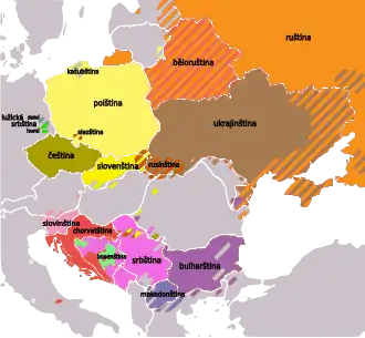 ![]() Rozdělení slovanských zemí podle jazykových větví západní jazyky východní jazyky jižní jazyky | |