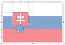 Některé detaily formy slovenské státní vlajky určil až Zákon NR SR z 18. února 1993. Podle něho se výška štítu se znakem rovná polovině šířky vlajky a štít je olemovaný bílým páskem, jehož šířka je rovná jedné setině délky vlajky.