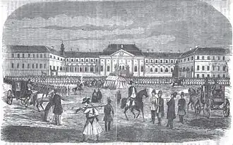 19. září 1848 začal nástup slovenských dobrovolníků proti uherské revoluci. Ještě týž den dobrovolnické jednotky obsadily Myjavu. Na lidovém shromáždění v Myjavě Štúr vypověděl jménem Slovenské národní rady poslušnost uherské vládě a jejím úřadům a vyhlásil samostatnost (autonomii) Slovenska v rámci Uherska. Zároveň vyzýval Slováky do boje za národní a sociální práva. Hurban ve své řeči vyzval k setření hranic mezi Slovenskem a Moravou, "lebo to všetko bola za starých časov jedna spoločná vlasť zbratrených národov slovanských". V Myjavě se Slovenská národní rada usídlila v domě vdovy po evangelickém faráři Koléniové. Při pobytu v Myjavě došlo k incidentu se setninou císařského pluku, jehož velitel vyzval dobrovolníky aby opustili město. Povstalci však přepadli císařské kasárny a vojáky odzbrojili. Ukázalo se, že výprava bude muset čelit i císařským jednotkám, jejichž podřízenost na území Uherska nebyla jasná.[1]