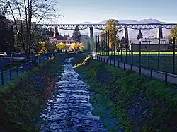 Jednu z nejvýznamnějších řek protékajících Slovenskem představuje Dunaj, který spolu s Moravou tvoří slovenskou jihozápadní hranici.[60] Nejdelším slovenským vodním tokem je Váh.[65] Mezi další významné řeky patří Hron, Hornád, Bodrog a Poprad.[60] Na Slovensku jsou častá rovněž horská jezera a minerální i termální prameny.[60][pozn. 3] Převážná část slovenského státu spadá do černomořského úmoří.[65]