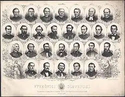 Ke zformování moderního slovenského národa došlo v průběhu 19. století během procesu, který je znám jako tzv. Slovenské národní obrození.[29] Klíčovou osobností první fáze obrození byl Anton Bernolák, který prosadil kodifikaci spisovné slovenštiny na základě západoslovenského nářečí (bernolákovština) na úkor snah evangelíků učinit spisovným jazykem na Slovensku češtinu (přesněji bibličtinu).[30] Druhá fáze obrození byla slavjanofilská a reprezentovali ji Jan Kollár a Pavel Josef Šafařík. Ve třetí fázi se generace vedená Ľudovítem Štúrem jednak definitivně rozhodla pro nezávislou slovenskou identitu i jazyk, a také dorostla k požadavkům politickým a zapojila se do revoluce v letech 1848 až 1849. Revolučním orgánem byla Slovenská národní rada řízená Štúrem, Jozefem Miloslavem Hurbanem a Michalem Miloslavem Hodžou. V revoluci podporovali tito Slováci centrální vládu ve Vídni proti uherským povstalcům, neboť si slibovali, že by Vídeň po revoluci mohla uznat nezávislost Slovenska na Uhrách v rámci Rakouské monarchie.[31] Po porážce uherského povstání však naopak došlo k centralizaci státu a požadavky Slováků na federalizaci monarchie či národní autonomii nebyly vyslyšeny.[32]