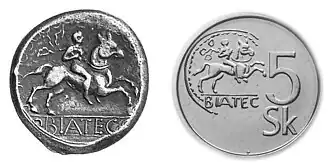 Lid lužické kultury se nakonec smísil s Kelty, prvním známým etnikem slovenské historie, jehož příchod je předpokládán ve druhé polovině 4. století př. n. l. Keltská kultura má na Slovensku specifickou větev zvanou púchovská kultura (2. století př. n. l. – 2. století).[15] Pravděpodobným tvůrcem této kultury byl kmen zvaný Kotinové. Nejznámější a nejlépe prozkoumanou keltskou lokalitou je opevněná soustava Havránok nad Liptovskou Marou. Kotinové prý okolo roku 172 nepomohli Římanům proti Markomanům, za což je Marcus Aurelius nechal přestěhovat do Dolní Panonie. V okolí Bratislavy se na krátkou dobu usadil také jiný keltský kmen, Bójové. Jemu je připisována ražba mincí typu biatec (též nazývaných „hexadrachmy bratislavského typu“). Na zadní straně mají tyto mince latinské nápisy, které představují nejstarší použití písma na území dnešního Slovenska.[16]