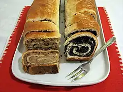 Potica, sladká roláda s ořechovou a makovou náplní