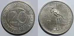 20 tolarjev | 24 mm | 2 mm | 6,85 g | Vroubkovaná | Čáp bílý, „CICONIA CICONIA“ | 7. červenec 2003 | |||
