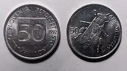 | Mince | 10, 20 a 50 stotin; 1, 2, 5, 10, 20 a 50 tolarů |