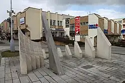 Pohled na centrum od V, sluneční hodiny jsou vlevo -