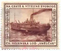 Počínaje rokem 1918 plulo plavidlo Smělčak pod československou vlajkou.[2] (Pod touto vlajkou byly provozovány, kromě Smělčaku, již o něco dříve i další pomocné parníky Blaník a Upocený.)[2] Proti této skutečnosti protestovaly některé státy, protože československá vlajka nebyla vedena v mezinárodním lodním rejstříku lodních praporů a vlajek.[2][3] Před návratem do Československa byli čs. legionáři soustřeďováni na Ruském ostrově v Zálivu Petra Velikého v Japonském moři.[4] Spojení s Vladivostokem, jeho přístavem a s Ruským ostrovem zajišťovali právě československé posádky ukořistěných parníků Dobrovolec, Smělčák (Smělčak), Střelec (Streljok či Strělok) a Naděžnyj (Naděžný).[1] Tyto parníky československé flotily zajišťovaly převoznickou službu, obstarávaly zásobování, lokální transporty osob a realizovaly spojení se strážními jednotkami v okolí vladivostockého přístavu.[1] Některé z těchto parníků údajně zajížděly až do Japonska.[4] Této československé „flotile“ velel kapitán Hégr.[3]