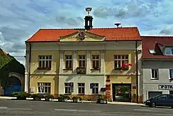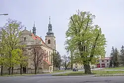 Město se rozkládá v nadmořské výšce 340 až 375 metrů na návrší, mírně se sklánějícím k severovýchodu ke Slanému, na jihozápadě přecházejícím do roviny, táhnoucí se ke Kačici. Jeho střed tvoří rozlehlé protáhlé náměstí, jímž po délce probíhá hlavní silnice. V horní (západní) části náměstí stojí radnice, kostel Nejsvětější Trojice, děkanství a v jejich sousedství zámek obehnaný příkopem.