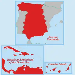 - ↑ SÁNCHEZ-BARBA, Mario Hernández. La Monarquía Española y América: Un Destino Histórico Común. Libros de Historia/Rialp Series. Ediciones Rialp, 1990, roč. 32, s. 57–58. (...) que estarán y las tendremos como a cosa incorporada en ellas. (...) en ningún tiempo puedan ser sacadas, ni apartadas, ni enajenadas, (...). Dostupné online.