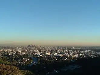 Na rozhraní města a oblohy je možno pozorovat opar oxidačního smogu