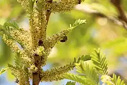 Květy jsou drobné, jednopohlavné, samčí i samičí rostoucí spolu ve stěsnaných květenstvích, ve svazečcích, na bází tenkých větviček ze kterých dále vyrůstají listy. V květenství převažují samčí květy, o málo větší samičí bývají ve svazečku jeden nebo dva, všechny květy mají jen kališní lístky, korunní chybí. Samčí květy rostou na delších, asi 2 mm dlouhých stopkách, mají šest žlutozelených lístků asi 2 mm velkých a tři tyčinky se srostlými nitkami nesoucí asi 1 mm dlouhé, podélně pukající prašníky. Samičí květy jsou téměř přisedlé, mají také šest podobných, žlutých lístků asi 2 mm velkých a vejčitý, 2 mm velký semeník se třemi oddíly po dvou vajíčkách a hluboce rozeklanou čnělku nesoucí tři nahnědlé blizny. Květy musí být opylený cizím pylem, převážná většina samičích květů se však neopylí a opadá (až 70 %). Květy produkují nektar jen od večera do rána, proto opylující včely přilétající pouze za svítání a v podvečer, kdežto můry rodu Epicephala v noci. Řídce se vyskytují také dvoudomí jedinci, u těch jsou všechny květy na stromě jen samčí nebo samičí.