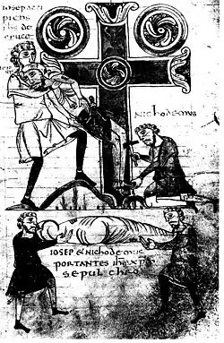V průběhu 11. a 12. století se počet křížů neustále zvyšoval. Vyráběly se především knižní iluminace. Ottonské iluminace se nacházejí také na území dnešního západního Polska, v Hnězdně. Kolem roku 1085 byl vytvořen kodex, jehož Snímání z kříže (KA 27) zabírá třetinu stránky. Nikodém je zobrazen v nadživotní velikosti, přistupuje ke kříži zprava a předává tělo Josefovi, který stojí vlevo. Nikodémova královská postava zde působí královštěji než kdekoli jinde. Mimochodem, jsou zde přítomny pouze tři ženy, Jana není vidět. Ikonografie tohoto obrazu mu proto dává zvláštní postavení.