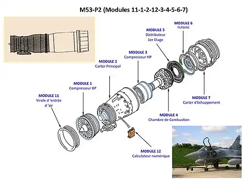 Konstrukce M53 je založena na motoru SNECMA Atar, původně byl značen "Super Atar". Disponuje třístupňovým dmychadlem a pětistupňovým axiálním kompresorem. Spalovací komora je prstencová a turbína dvoustupňová axiální. Klíčové konstrukční cíle zahrnovaly snadnou údržbu a obsluhu. Motor je modulární a má elektronickou kontrolu.