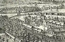 Rozsáhlá architektonicko-urbanistická kompozice, rozkládající se na obou březích Labe, byla dokončena v roce 1724,[4] jak mj. ilustruje rytina dvorního Šporkova grafika Michaela Heinricha Rentze z téhož roku.
