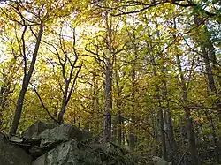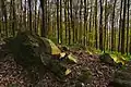 Druhým nejčastějším ekosystémem jsou květnaté bučiny, tvořící přibližně 30 % území. Jedná se o mírné až prudší svahy se sklonem k západu. Ve stromovém patru dominuje buk lesní (Fagus sylvatica), habr obecný (Carpinus betulus). V podrostu pak ostřice chlupatá (Carex pilosa) a kyčelnice cibulkonosná (Dentaria bulbifera).[8]