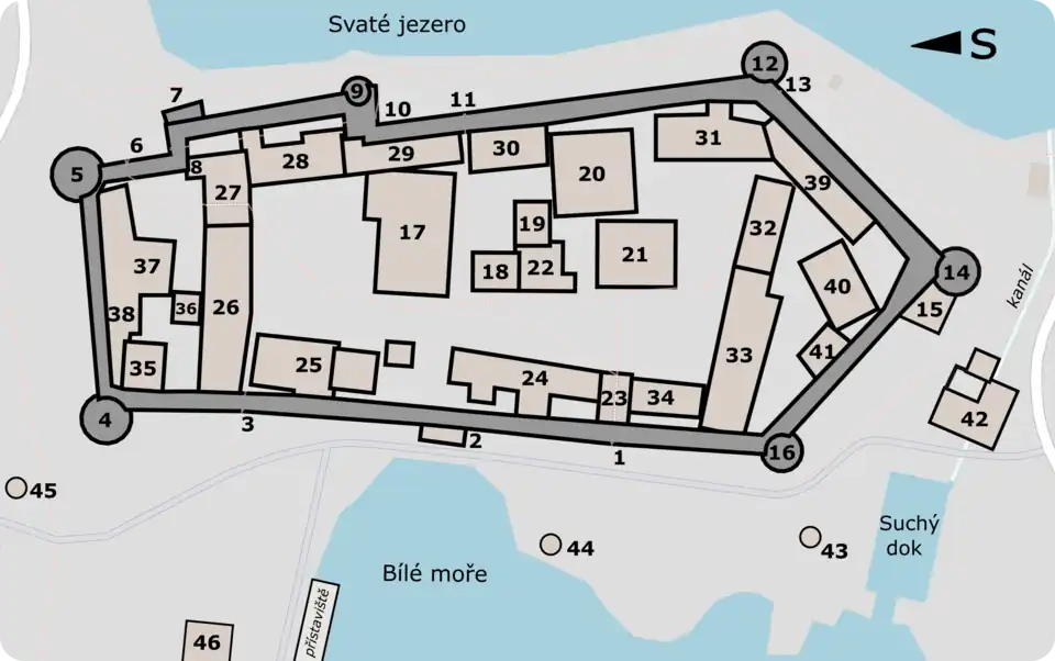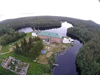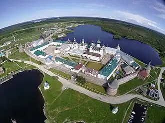 ![]() Letecký snímek kláštera, v popředí Bílé moře, v pozadí Svaté jezero | |