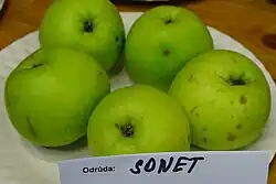 Sonet (Malus domestica 'Sonet') je ovocný strom, kultivar druhu jabloň domácí z čeledi růžovitých. Plody jsou řazeny mezi odrůdy zimních jablek, sklízí se v říjnu, dozrává v listopadu, skladovatelné jsou do ledna. Odrůda je považována za rezistentní vůči některým chorobám,[1] odrůdu lze pěstovat bez chemické ochrany.[2] Odrůdu lze pěstovat téměř bez řezu, jde o odrůdu se sloupovitým habitem koruny. Plodnost je střídavá.[2]