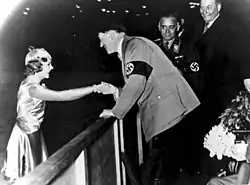 K jejím obdivovatelům patřil také Adolf Hitler, který ji na olympiádě v Ga-Pa pozval na soukromý oběd do svého sídla v Berchtesgadenu a věnoval jí fotografii s podpisem. Henie byla svými krajany kritizována, že ho na krasobruslařské exhibici před olympiádou veřejně pozdravila nacistickým pozdravem – zvednutou paží – a byly jí přisuzovány sympatie k fašistickému hnutí. Hitlerova fotografie, vystavená v domě jejích rodičů, zachránila při okupaci Norska jejich majetek před konfiskací.