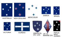 Souhvězdí Jižní kříž se dostalo na některé insignie zemí nejen z jižní polokoule. Některé vlajky zobrazují pět hvězd (včetně epsilonu Crucis), mnohé zobrazují hvězdy jen čtyři. Nejznámějšími případy jsou vlajky: