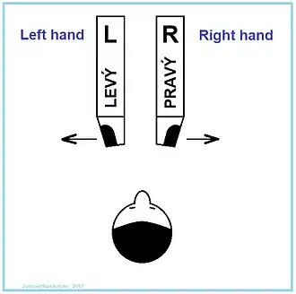 vnější a vnitřní, pravé, levé a souměrné, uběrací a hladící, pozitivní a negativní (dle úhlu čela)