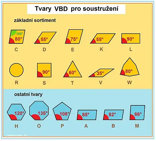 Výběr VBD se provádí na základě údajů publikovaných v katalogu výrobce, kde jsou doporučeny druhy SK a řezné podmínky pro konkrétní materiály. Typ utvařeče se stanoví podle diagramů, kde je vyznačena oblast použití podle posuvu na otáčku a hloubky řezu.