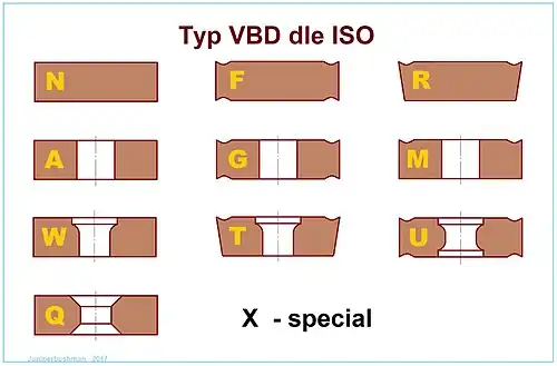 | Tvar nože – kód ISO | Název | Představitelé | Poznámka |