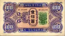 V souvislosti s pobytem sovětských vojsk v severovýchodní Číně musely úřady věnovat pozornost otázce zásobování posádek potravinami a potřebami. V oběhu byly různé čínské peníze, ale neexistovala žádná emitující banka. Za těchto okolností, aby zaplatilo za potřebné potraviny a další zboží a služby pro své jednotky, velení Rudé armády začalo vydávat vlastní jüany, jejichž emise pak trvala až do stažení sovětských vojsk. Tyto „bankovky“, opatřené kolkem, zůstaly v oběhu i po stažení sovětských vojsk, dokud Čína nevydala nové bankovky.