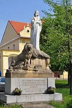 Pomník obětem světových válek se sochou Jana Husa na náměstí -