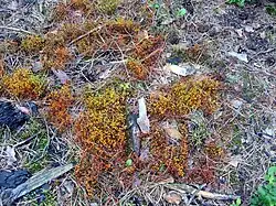 - Třetí stadium – mech prutník stříbřitý (Bryum argenteum), případně další druhy téhož rodu, dále rohozub nachový (Ceratodon purpureus) a prutníček hruškovitý (Leptobryum pyriforme), obvykle 2–3 roky po požáru. Výrazněji se prosazují lupenaté anthrakofilní druhy hub.